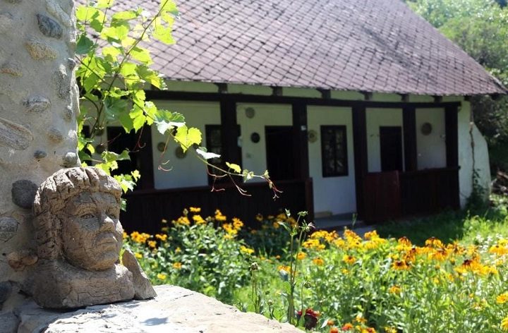 În jurul casei este amenajat un parc dendrologic străjuit de statuia marelui George Stephănescu